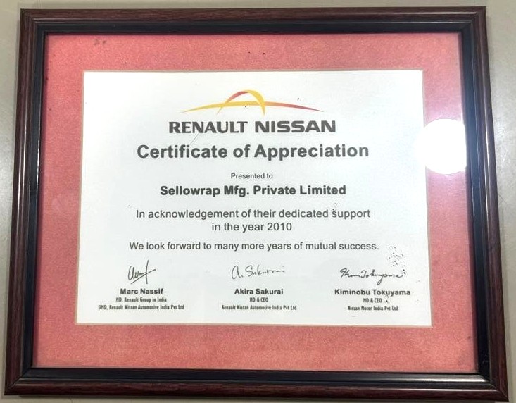 Renault Nissan Certificate of Appreciation (2010) - Dedicated Support. | ![]() |
